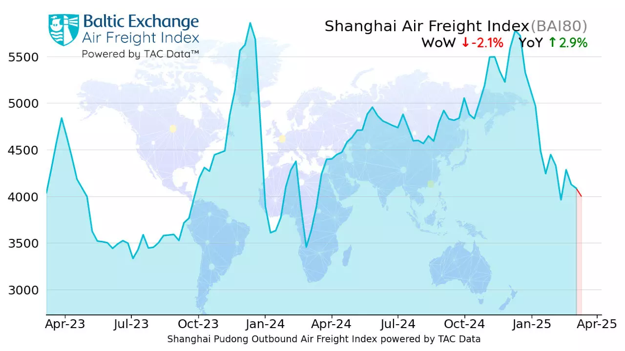 After plenty of volatility, last week was a relatively quieter period for global air freight, according to the latest data from TAC Index. The global Baltic Air Freight Index calculated by TAC was unchanged in the week to March 10, still ahead by +6.2 percent year-on-year.