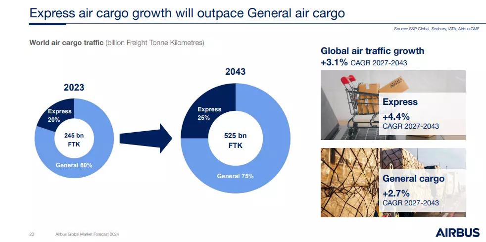 The overall cargo market is expected to reach 525 billion freight tonne kilometres (FTKs) in 2043 compared to 245 billion FTK last year.