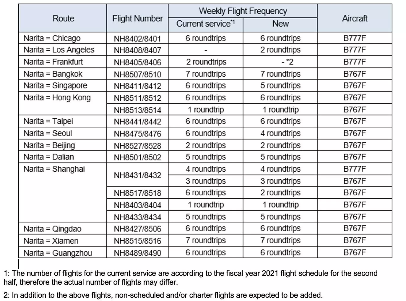 ANA plans to operate cargo flights for the March 27, 2022-October 29, 2022 period (check graphic), based on demand trends and market environment.