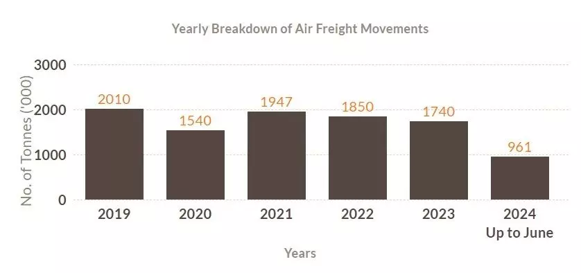 For the full year of 2023, Changi had handled 1.7 million tonnes, down 13 percent from the pre-covid level of two million tonnes in 2019.