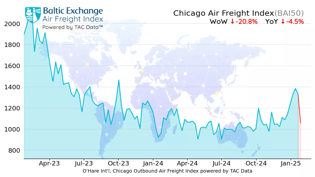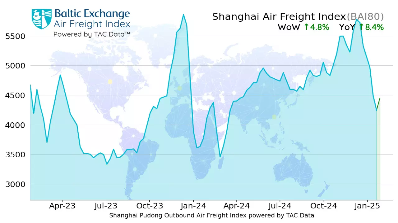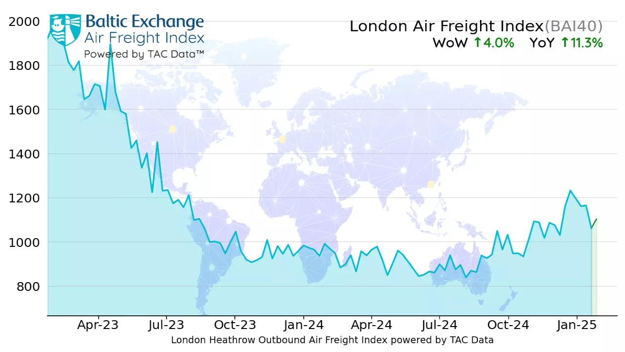 "The overall Baltic Air Freight Index calculated by TAC edged down -0.7 percent, leaving it ahead by +8.7 percent YoY, with the market still relatively firm following a modest uptick on the busiest lanes out of China in the runup to Chinese New Year."