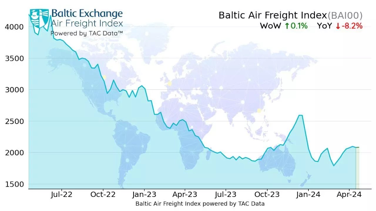 Global air freight rates were little changed in the week to April 22, according to the latest data from TAC Index, the leading price reporting agency on air freight markets.