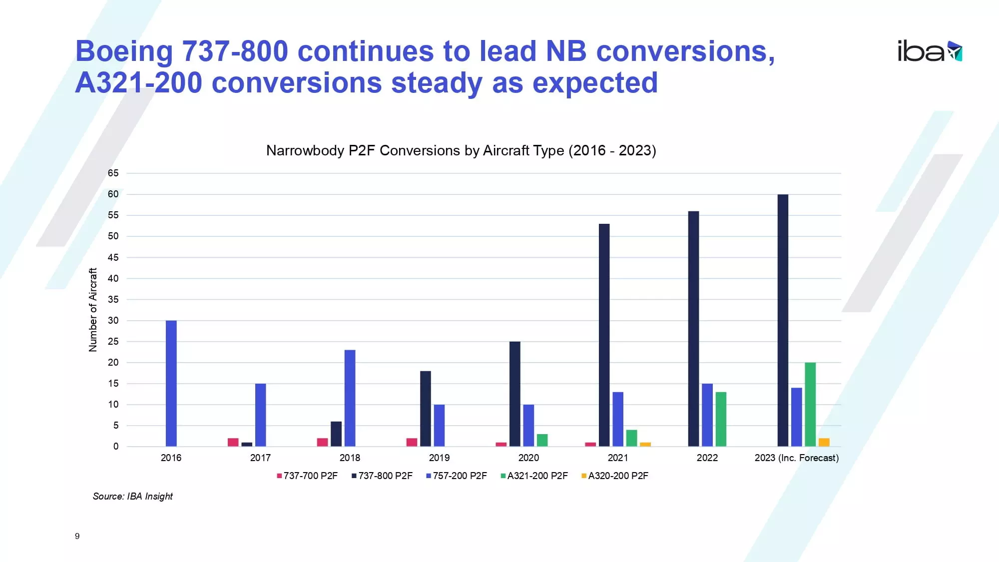 IBA, the leading aviation market intelligence and consultancy company, has indicated signals of potential oversupply of the Boeing 737-800 passenger to freighter (P2F) aircraft with 60 conversions forecast for this year alone.