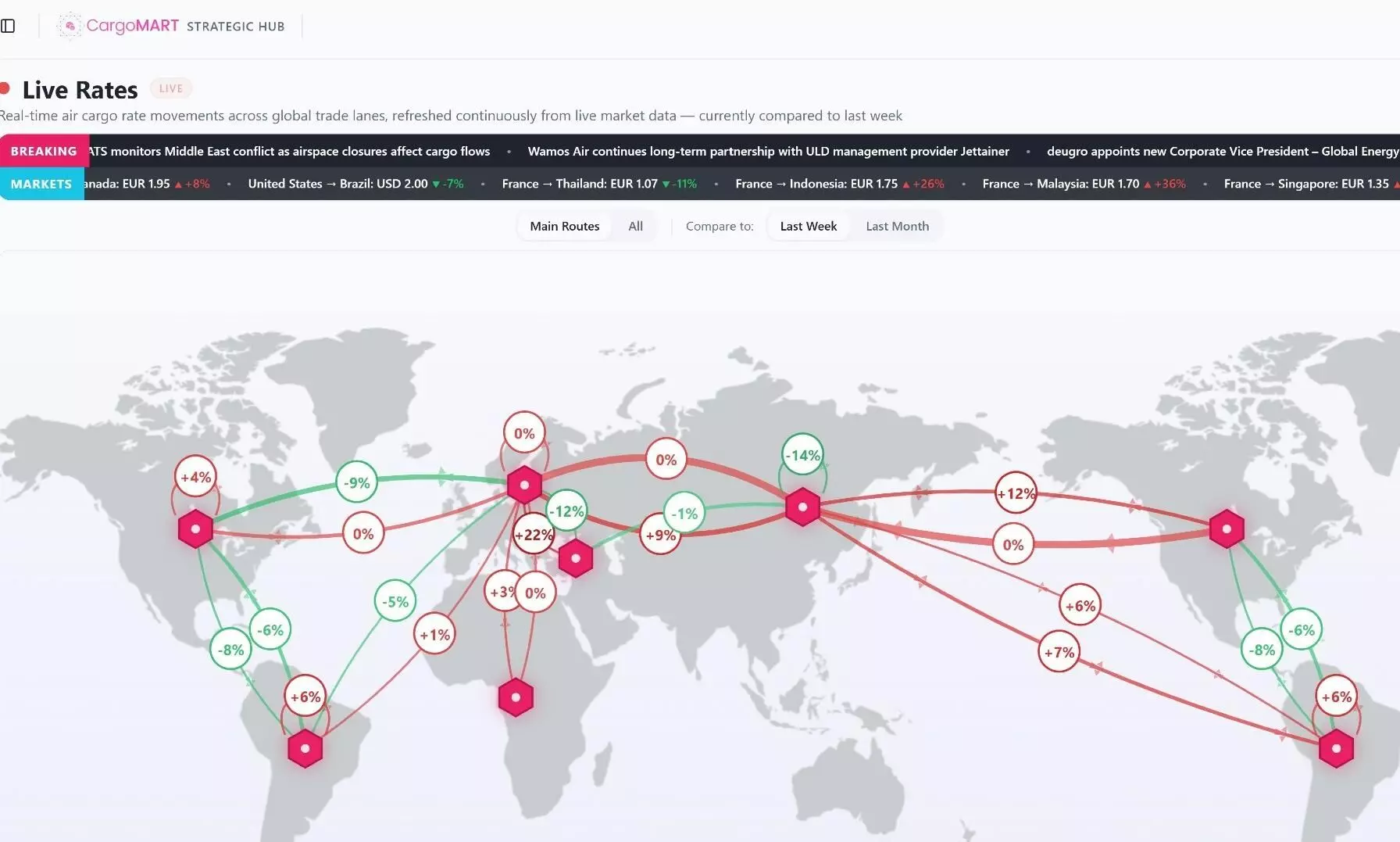 In this environment, real-time market visibility is becoming increasingly important. CargoAi said users of its platform can monitor these changes directly through continuously updated rate data and operational insights, as traditional datasets with a one-month lag are no longer sufficient in a fast-moving market.