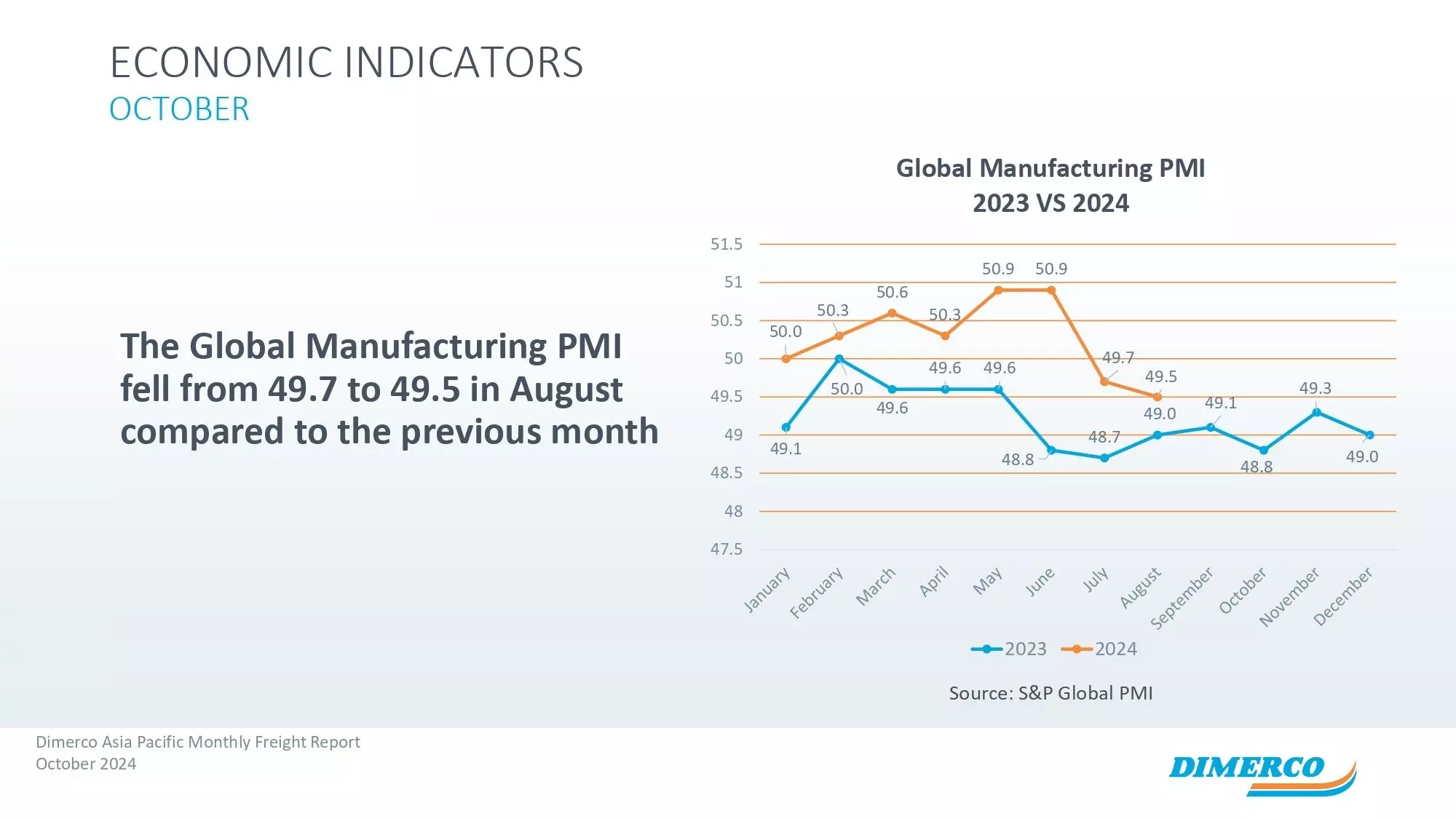 The Global PMI Composite Output Index rose slightly to 52.8 in August, up from 52.5 in July, according to the latest update from Dimerco. "However, this growth was entirely driven by the service sector as manufacturing output fell. The Global PMI New Export Orders Index dropped to 48.9 in August from 49.6 in July, indicating deteriorating trade conditions for the third consecutive month, with the fastest decline in eight months.