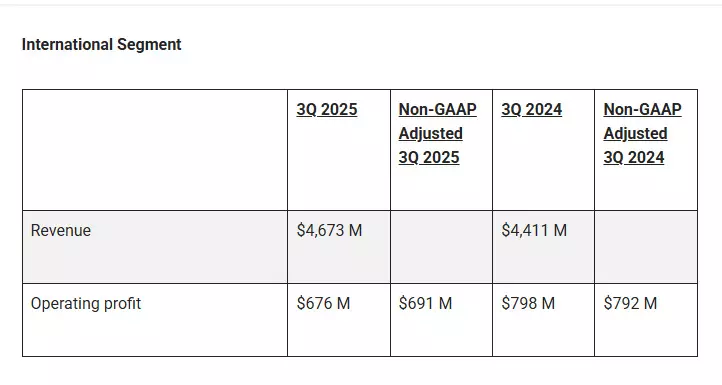 International operations generated $4.67 billion in revenue, marking a 5.9 percent increase driven by a 4.8% rise in average daily volume. The segment’s operating profit reached $676 million, reflecting a non-GAAP adjusted margin of 14.8%.