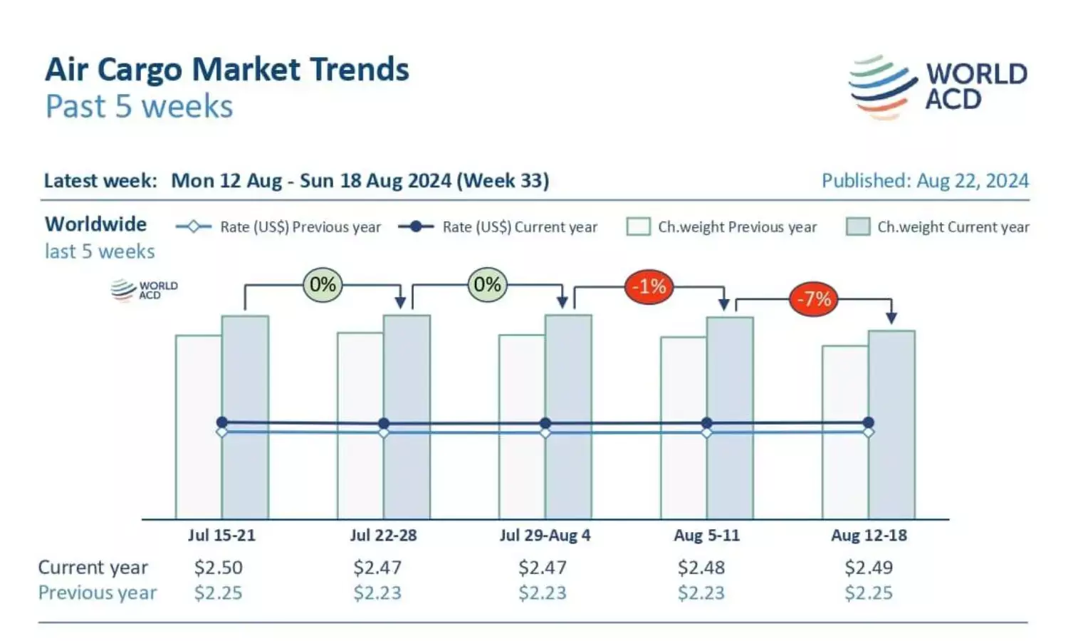 Most of the -11 percent decline ex-Europe (around 80 percent) can be explained by a fall in tonnages flown from countries where an August 15 holiday was widely celebrated (significantly in France, Italy and Spain but also parts of Germany and Belgium), the update added.