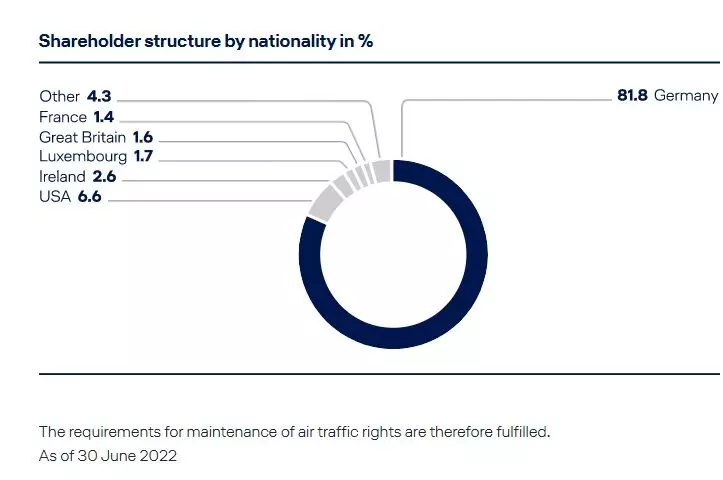 As of June 30, 2022, major shares by nationality were: Germany (81.8 percent), USA (6.6 percent) and Ireland (2.6 percent).