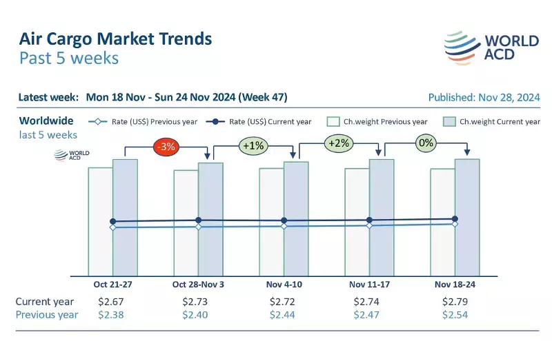 Total air cargo demand, measured in cargo tonne-kilometers (CTKs), declined by 0.1 percent in February 2025 compared to...